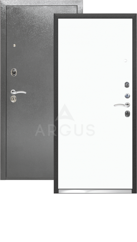 Дверь Аргус Люкс-3К "Гладкая" антик серебро/белая эмаль софт
