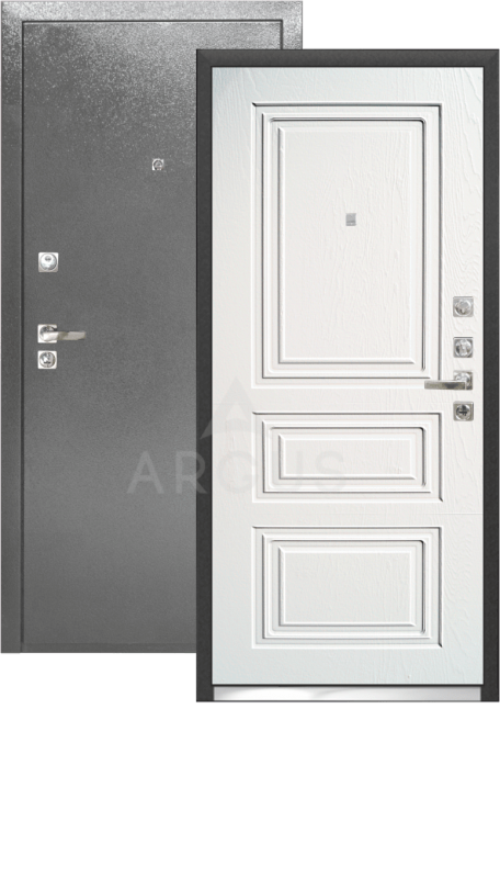 Дверь Аргус Люкс-3К "Скиф" антик серебро/Роял вуд белый квадратная фурн.
